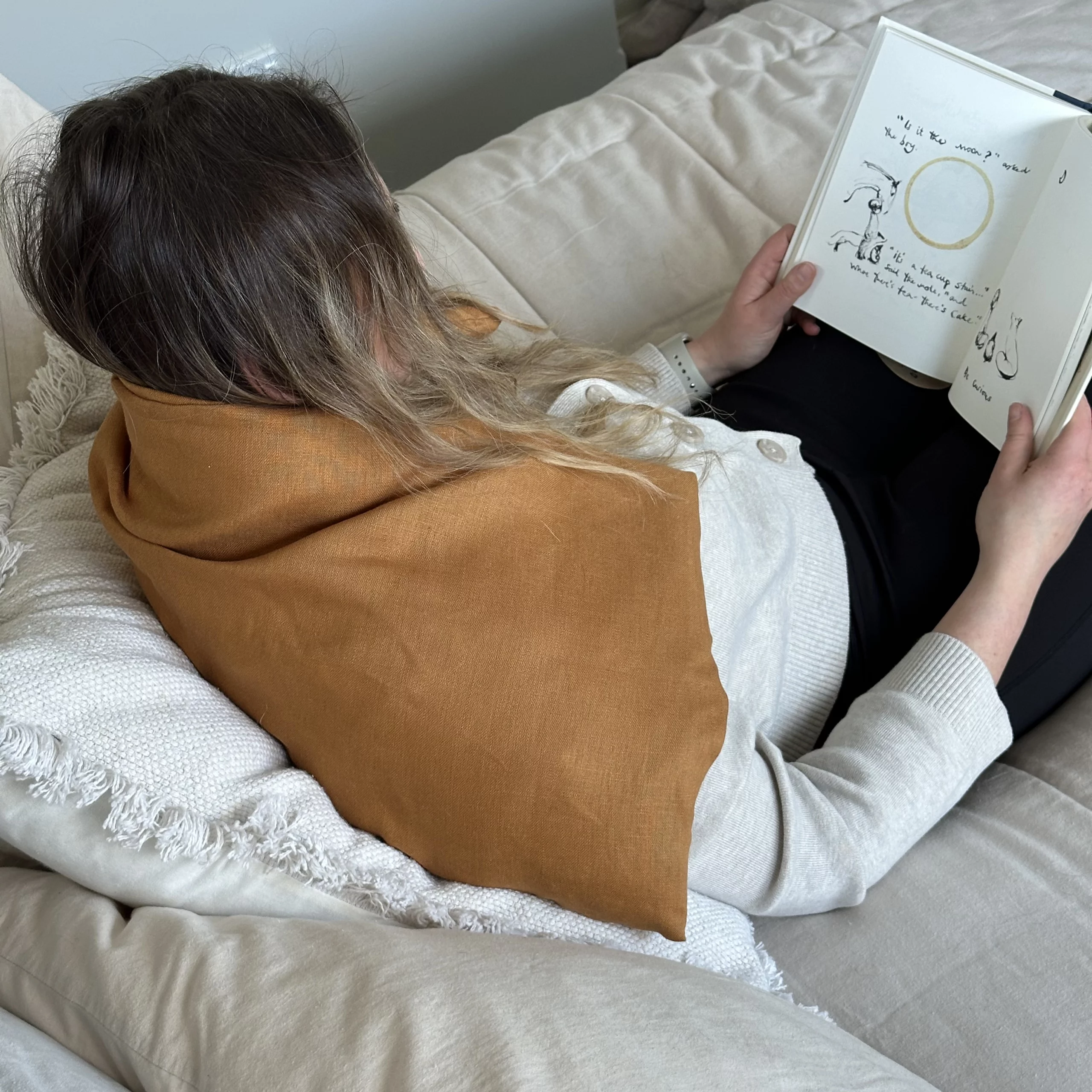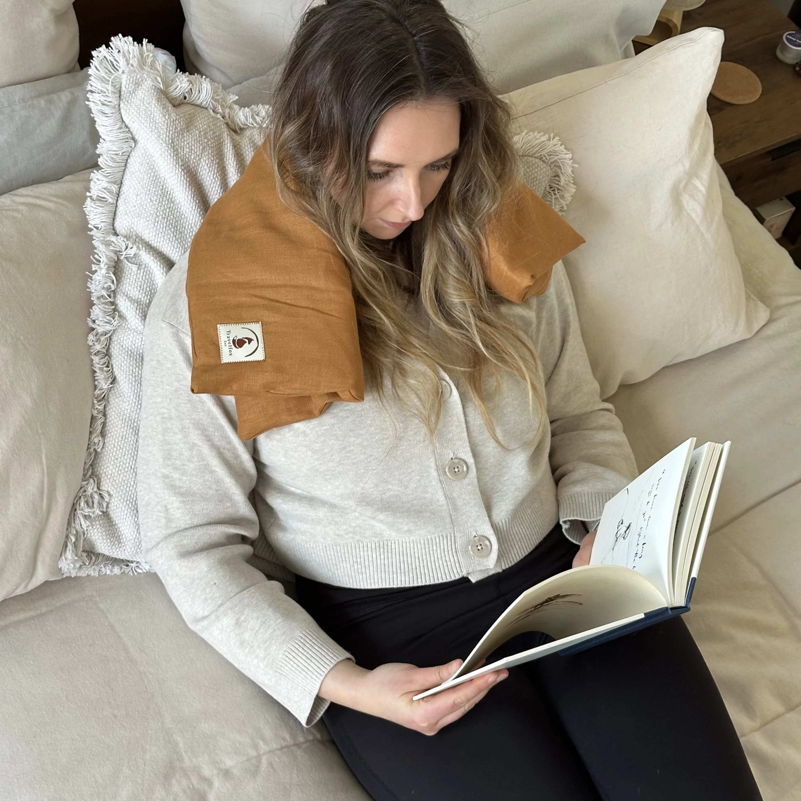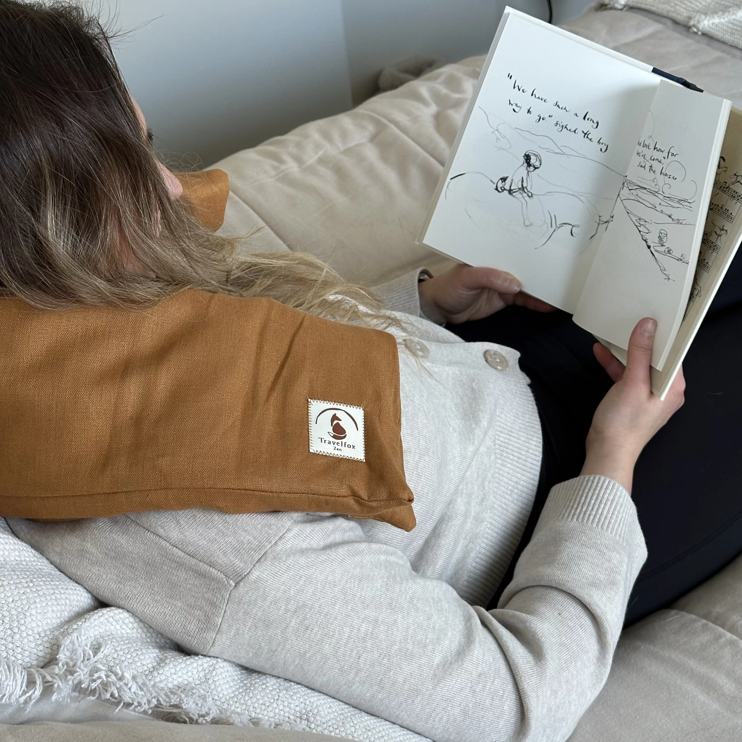I especially appreciate how versatile it is — I use it warm when I’m feeling cold and tired, and it’s the perfect snuggle companion. Draped over my chest and tummy or wrapped around my neck, it helps melt away tension and brings a sense of calm. Knowing it is made locally with natural materials makes it feel even more special. Highly recommend for anyone looking to add a little more ease and softness to their day.