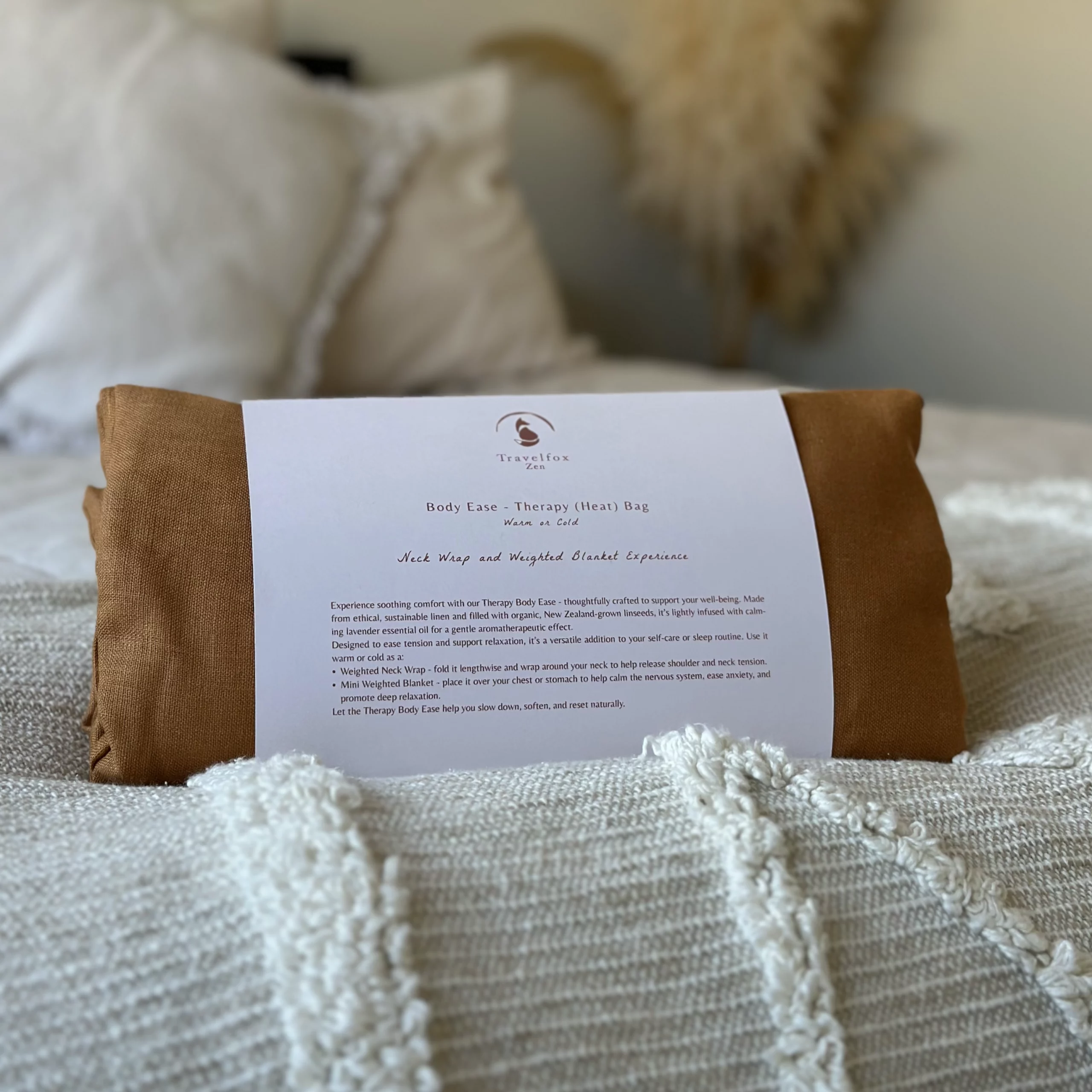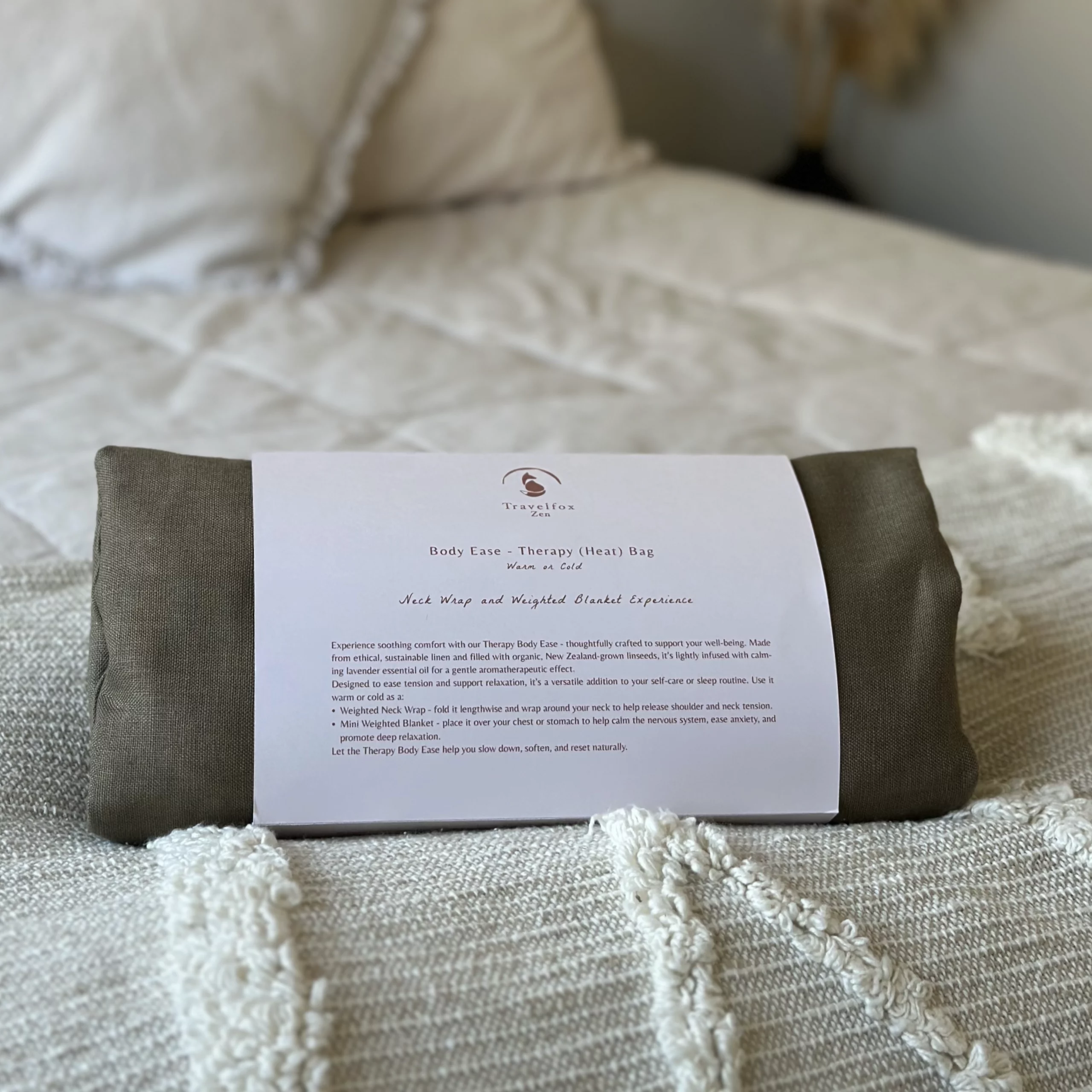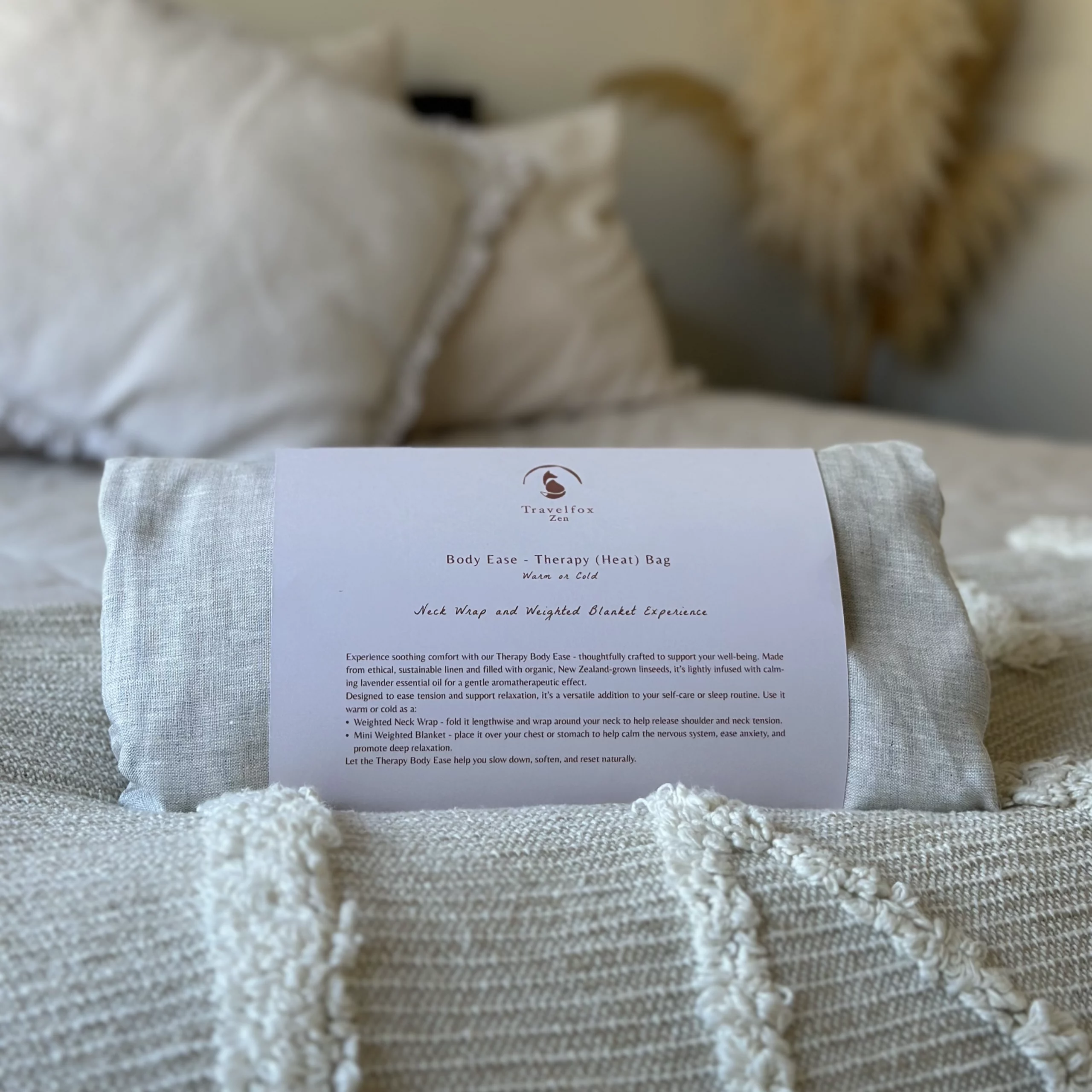 Experience soothing comfort with our Therapy Body Ease – thoughtfully crafted to support your well-being. Made from ethical, sustainable linen and filled with organic, New Zealand-grown linseeds, it’s lightly infused with calming lavender essential oil for a gentle aromatherapeutic effect.